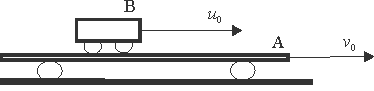 38.22. По горизонтальной платформе А, движущейся при отсутствии трения, перемещается тело В с постоянной относительной скоростью u0 (см. рисунок к задаче 36.9). При затормаживании тела В между ним и платформой А возникают силы трения. Определить работу внутренних сил трения между телом В и платформой А от момента начала торможения до полной остановки тела В относительно платформы А, если их массы соответственно равны m и М.