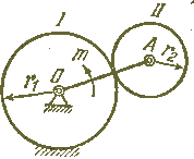 38.27. Эпициклический механизм, расположенный в горизонтальной плоскости, приводится в движение из состояния покоя посредством постоянного вращающего момента L, приложенного к кривошипу ОА. Определить угловую скорость кривошипа в зависимости от его угла поворота, если неподвижное колесо I имеет радиус r1, подвижное колесо II — радиус r2 и массу М2 а кривошип ОА – массу М2. Колесо II считать однородным диском, а кривошип – однородным стержнем.