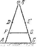 38.33. Стремянка ABC с шарниром В стоит на гладком горизонтальном полу, длина АВ = ВС = 2 l, центры масс находятся в серединах D и Е стрежней, радиус инерции каждой лестницы относительно оси, проходящей через центр масс, равен ρ, расстояние шарнира В от пола равно h. В некоторый момент времени стремянка начинает падать вследствие разрыва стержня FG. Пренебрегая трением в шарнире, определить: 1) скорость точки В в момент удара ее о пол; 2) скорость точки В в тот момент, когда расстояние ее от пола будет равно h/2.