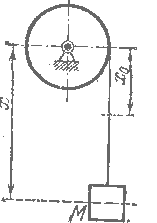 38.39. Решить предыдущую задачу с учетом массы троса, к которому привязан груз. Длина троса равна l, масса единицы длины троса равна М. В начальный момент с барабаца ворота свисала часть троса длиной а. Изменением потенциальной энергии троса, намотанного на барабан, пренебречь.