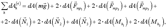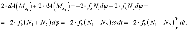 38.32. Скорость автомашины, движущейся по прямой горизонтальной дороге, возросла от v1 до v2 за счет увеличения мощности мотора. При этом был пройден путь s. Вычислить работу, совершенную мотором на этом перемещении автомашины, если М1 – масса каждого из четырех колес, М2 – масса кузова, r – радиус колес, fк – коэффициент трения качения колес о шоссе. Колеса, катящиеся без скольжения, считать однородными сплошными дисками. Кинетической энергией всех деталей, кроме колес и кузова, пренебречь.