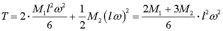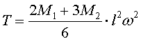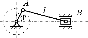 38.5 (38.5). Вычислить кинетическую энергию кривошипно-ползунного механизма, если масса крнвошипа m1, длина кривошипа l, масса ползуна m2, длина шатуна l. Массой шатуна пренебречь. Кривошип считать однородным стержнем. Угловая скорость.вращения кривошипа ω.