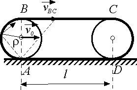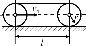 38.4. Вычислить кинетическую энергию гусеницы трактора, движущегося со скоростью v0. Расстояние между осями колес равно l, радиусы колес равны r, масса одного погонного мотора гусеничной цепи равна γ.