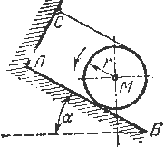 39.14. Однородное колесо радиуса r скатывается без скольжения по наклонной плоскости, образующей угол α с горизонтом. При каком значении коэффициента трения качения fk центр масс колеса будет двигаться равномерно, а колесо при том будет равномерно вращаться вокруг оси, проходящей через центр масс перпендикулярно его плоскости?