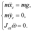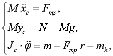Ответ: хc = v0 t, ус = g t2/2, φ = ω0 t где φ —угол поворота диска, образованный осью х и диаметром, занимавшим в начальный момент горизонтальное положение.