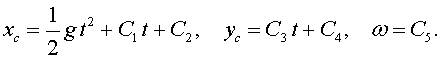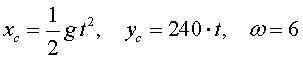 ![]() ![]() .Начальные условия при t = 0 , xc0 = yc0 = 0, ω0 = ω, ![]() С1 = С2 = С4 = 0, С3 = 240, С5 = 6.