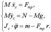 39.3. Решить предыдущую задачу, считая, что момент mс сопротивления движению относительно подвижной горизонтальной оси, проходящей через центр масс С диска перпендикулярно плоскости движения его, пропорционален первой степени угловой скорости диска φ', причем коэффициент пропорциональности равен β. Момент инерции диска относительно этой оси равен Jс.