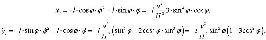 ,xc = OA + l·cos φ, yc = l·sin φ.