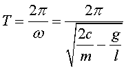 | 54.2. Определить период малых колебании астатического маятника, употребляемого в некоторых сейсмографах для записи колебаний почвы. Маятник состоит из жесткого стержня длины l, несущего на конце массу m, зажатую между двумя горизонтальными пружинами жесткости с с закрепленными концами. Массой стержня пренебречь, и считать пружины в положении равновесия ненапряженным. Ответ: . Решение. |