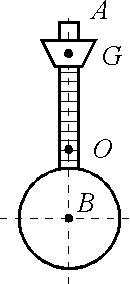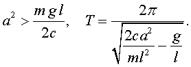 | 54.4. Предполагая, что маятник, описанный в предыдущей задаче, установлен так, что масса m расположена выше точки подвеса, определить условие, при котором вертикальное положение равновесия маятника устойчиво, и вычислить период малых колебаний маятника. Ответ: Решение. |