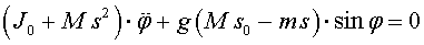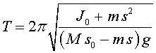 | 54.6. Определить период малых колебаний метронома, состоящего из маятника и добавочного подвижного груза G массы m. Момент инерции всей системы относительно горизонтальной оси вращения изменяется путем смещения, подвижногруза G. Масса маятника М; расстояние центра масс маятника от оси вращения О равно s0; расстояние OG = s; момент инерции маятника относительно оси вращения J0. Ответ: . Решение. |