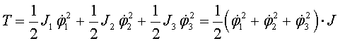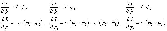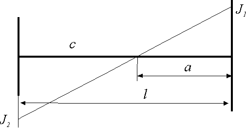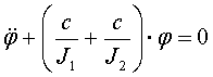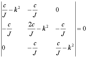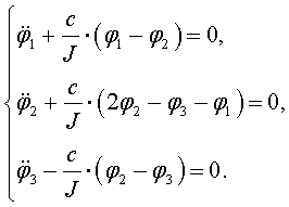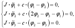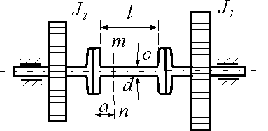 одинаковыми дисками. Два диска закреплены на концах вала, а третий — посредине. Момент инерции каждого диска относительно оси вала J ; жесткость на кручение участков вала c1 = c2 = c. Массой вала пренебречь.