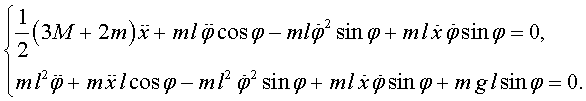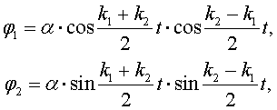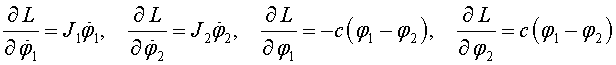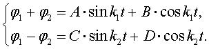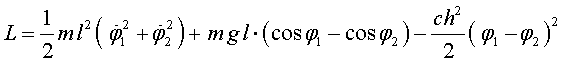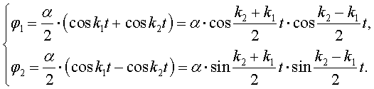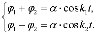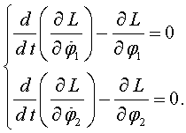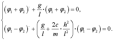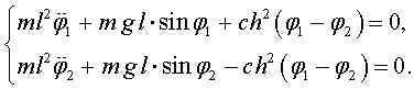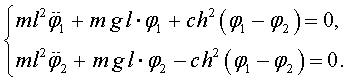 , где φ1 и φ2 отклонение маятников от вертикали и