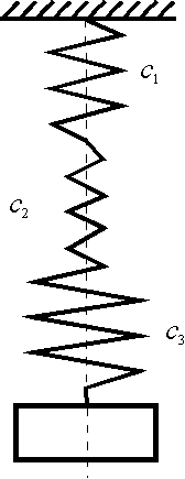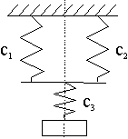 Коэффициенты жесткости пружин с1 = 2 Н/м, с2 = 4 Н/м и с3 = 6 Н/м. Определить коэффициент жесткости пружинной подвески. Ответ округлить до сотых. |