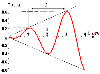 Вынужденные колебания материальной точки массой m = 1 кг в случае резонанса заданы графиком функции х = х (t). Определить максимальное значение действующей на точку вынуждающей сипы F = F0 sin pt. Ответ округлить до сотых.