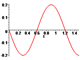 Вынужденные колебания материальной точки массой m = 1 кг в случае резонанса заданы графиком функции х = х (t). Определить максимальное значение действующей на точку вынуждающей сипы F = F0 sin pt. Ответ округлить до сотых. |
