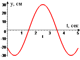Определить начальнyю скорость материальной точки (см/с), при которой ее свободные колебания будут соответствовать закону движения, заданному графиком функции y = y(t). Ответ округлить до десятых. |