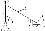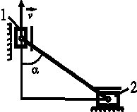 Определить модуль количества движения ползуна 2, масса которого m2 = 1 кг , в момент времени, когда угол α = 60°, если ползун 1 движется со скоростью v = 2 м/с. Ответ округлить до сотых. |