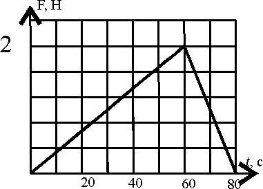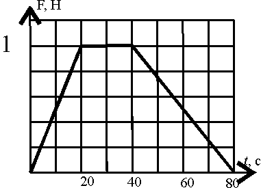 Точка массы 5 кг начинает двигаться из состояния покоя под действием переменной силы, график которой представлен на рисунке. Определить скорость (м·c), которую получит точка на 80 сек своего движения. Ответ округлить до целых.