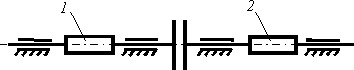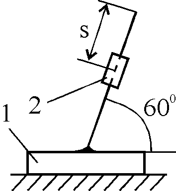 Тело 1 массой 4 кг может двигаться по горизонтальной направляющей. На какое расстояние переместится тело 1, когда однородный стержень 2 массой 2 кг и длиной l = 0,6 м, опускаясь под действием силы тяжести, займет вертикальное положение. В начальный момент система находилась в покое. Ответ округлить до десятых. |