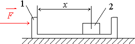 На тело 1 действует постоянная сила F = 10 Н. Определить ускорение этого тела в момент времени t = 0,5 с, если относительно него под действием внутренних сил системы движется тело 2 согласно уравнению х = соs πt. Массы тел: m1 = 4 кг, m2 = 1 кг. Тела движутся поступательно. |