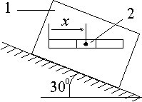 Определить ускорение тела 1, скользящего по гладкой наклонной плоскости, если в горизонтальных направляющих относительно него под действием внутренних сил системы движется тело 2 согласно уравнению х = t 2. Массы тел: m1 = m2 = 1 кг. Тела движутся поступательно. Ответ округлить до сотых. |