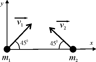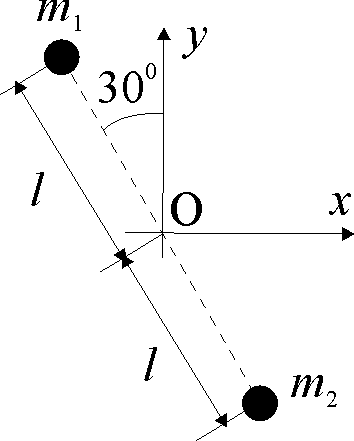 Определить центробежный момент инерции механической системы, состоящей из двух материальных точек, относительно осей Ох, Оу. Массы точек m1 = 1 кг , m2 = 2 кг , расстояние l = 0,5 м. Ответ округлить до тысячных.