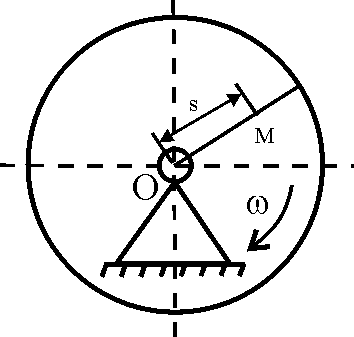 Диск вращается с угловой скоростью ω = 8 рад/с. По радиусу диска движется точка М массой m = 1 кг по закону s = 0,2t. Определить модуль количества движений этой механической системы в момент времени t = 0,5 с. Ответ округлить до тысячных. |
