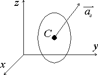 Однородный диск радиуса R = 0,5 м, масса которого m = 20 кг, вращается с постоянным угловым ускорением ε = 10 рад/с2. Определить модуль главного вектора внешних сил, действующих на диск. |