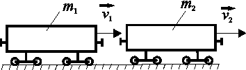 По горизонтальному участку пути движутся два вагона, массы которых m1 = 6·104 кг, m2 = 2·104 и скорости v1 = 1 м/с, v2 = 3 м/с. Второй вагон догоняет первый и сцепляется с ним. Пренебрегая сопротивлением движению, определить скорость вагонов после сцепления. Ответ округлить до десятых.