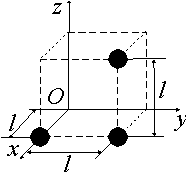 Определить полярный момент инерции механической системы, состоящей из трех одинаковых материальных точек, относительно начала координат О, если расстояние l = 0,3 м, а масса каждой точки m = 0,5 кг. Ответ округлить до сотых. |