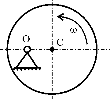 Диск массой m = 20 кг вращается равномерно вокруг неподвижной оси с угловой скоростью ω = 10 рад/с. Определить модуль главного вектора внешних сил, приложенных к диску, если его центр тяжести удален от оси вращения на расстояние ОС = 0,5 см. |