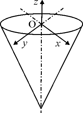 Определить центробежный момент инерции Iуz однородного конуса относительно осей Оу, Ох. |