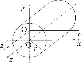 Определить момент инерции однородного цилиндра массой m = 70 кг относительно оси O1z1, параллельной центральной оси Оz, если радиус r = 0,1 м, а расстояние е = 0,05 м. Ответ округлить до тысячных. |