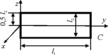 Определить момент инерции тонкой однородной прямоугольной пластины массой m = = 3 кг относительно оси Ох, если размеры l1 = 0,4 м , l2 = 0,2 м. Ответ округлить до сотых. |
