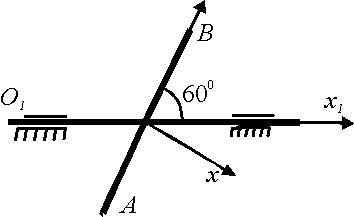 Определить момент инерции однородного стержня АВ относительно оси О1x1, если его момент инерции относительно главной центральной оси Ох равен 0,3 кг·м2. Ответ округлить до тысячных. |