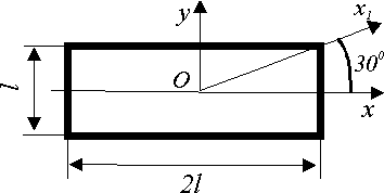 Определить момент инерции однородной тонкой пластины массой m = 3 кг относительно центральной оси Ох1, если размер l = 0,2 м. |