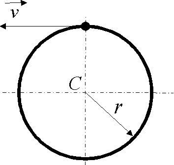 Материальная точка М массой m = 1 кг движется равномерно по окружности со скоростью v = 4 м/с. Определить момент количества движения этой точки относительно центра С окружности радиуса r = 0,5 м.