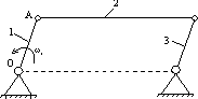 Определить координату хс центра масс кривошипно-ползунного механизма при углах φ = 90° и α = 30°, если масса кривошипа 1 равна 4 кг , а масса шатуна 2 равна 8 кг. Шатун 2 длиной 0,8 м считать однородным стержнем. Массой ползуна 3 пренебречь. Ответ округлить до тысячных. |