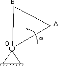 Однородный равносторонний треугольник ОАВ массой m = 5 кг вращается равномерно вокруг неподвижной оси. Определить его угловую скорость ω, если главный вектор внешних сил, действующих на него, равен 300 Н, а длина l = 0,4 м. Ответ округлить до десятых. |