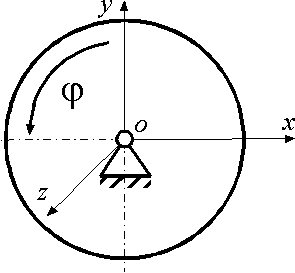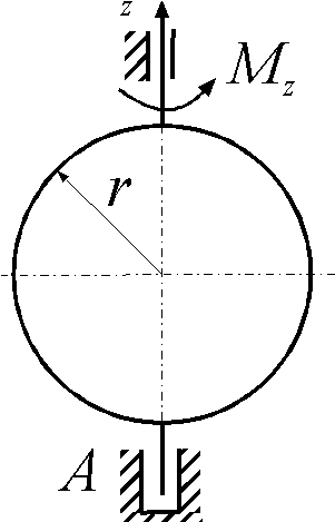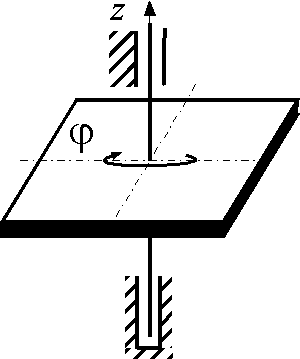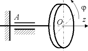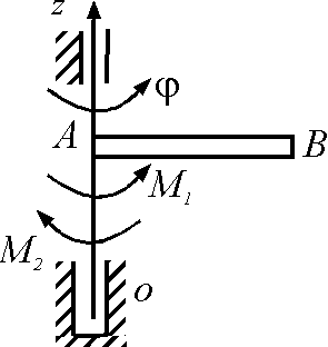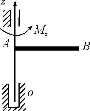Определить относительно оси z момент инерции ротора, закрепленного на консоли АО и совершающего крутильные колебания по закону φ = 3 sin(π/4)t. Движение происходит под действием восстанавливающего момента Мz = - π2 φ. |