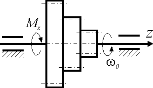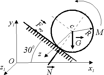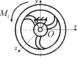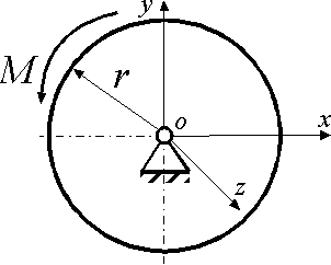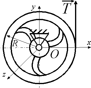 На какой угол повернется за 1 с маховик, масса которого m = 1,5 кг и радиус инерции i = 0,1 м, если он начинает вращаться из состояния покоя под действием главного момента внешних сил Мz = 0,15 Н·м ? |