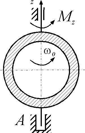 Определить угловое ускорение однородного тонкого диска радиуса R = 0,6 м, массой 4 кг, вращающегося вокруг вертикальной оси Аz под действием момента Мz = 1,8 Н·м. |