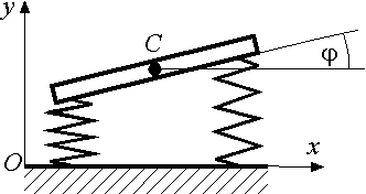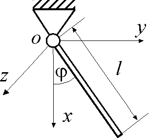 Однородный стержень массой m и длиной l = 1 м может вращаться вокруг горизонтальной оси Оz. Стержень отклонили от положения равновесия на малый угол φ и отпустили без начальной угловой скорости. Определить угловую частоту малых колебаний стержня. Ответ округлить до сотых. |