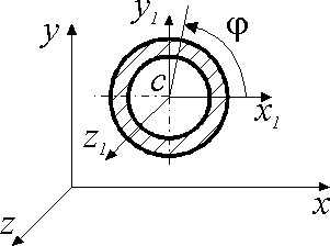 Обруч летит в вертикальной плоскости согласно уравнениям: хс = 3 м, ус = 4t - 4,9t2, φ = 28(1 - е-0,1t ). В момент времени t = 0,3 с определить значение главного момента внешних сил, действующих на обруч, если его момент инерции Ic1 = 0,113 кг·м2 . |