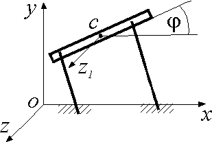 Машина движется согласно уравнениям: хс = 10t, ус = 1,5 +0,1 sin 2πt, φ = 0,1 sin 2πt. В момент времени t = 11,1 с определить модуль главного момента внешних сил относительно оси Cz1, если момент инерции машины ICz1 = 7500 кг·м2. |