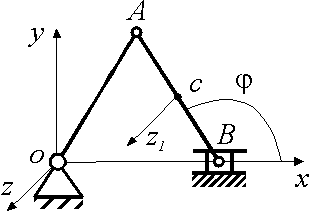 Движение шатуна АВ с моментом инерции Icz1 = 0,15 кг·м2 описывается уравнениями: