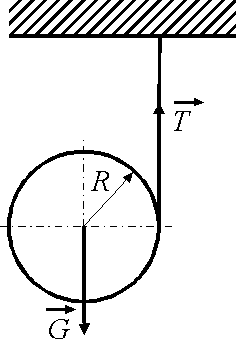 Однородный цилиндр массой m = 6 кг и радиуса R = 0,08 м падает в вертикальной плоскости, разматывая нить, натяжение которой Т = 19,6 Н. Определить угловую скорость цилиндра ω в момент времени t = 0,4 с, если при t0 = 0 угловая скорость равна нулю. Ответ округлить до десятых. |