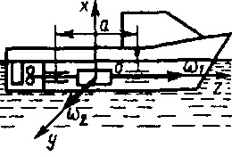 Винт и вал моторной лодки имеют момент инерции Iz = 1,5 кг·м2. Расстояние между подшипниками а = 0,8 м. Определить максимальные гироскопические реакции на подшипники при вращении винта с угловой скоростью ω1 = 250 рад/с при качке с угловой скоростью ω2 = 0,1 sin t. Ответ округлить до десятых.
