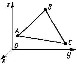 Материальные точки А, В и С, соединенные между собой невесомыми стержнями постоянной длины, движутся в пространстве. Определить число степеней свободы системы материальных точек. Ответ округлить до целых. |